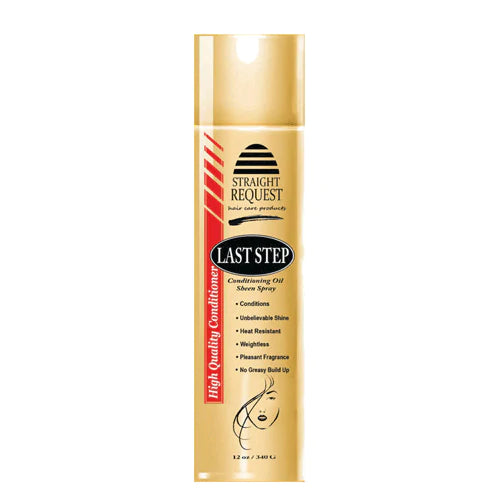 Last Step is a conditioning weightless oil sheen spray designed to give hair that ultimate long lasting shine protection.